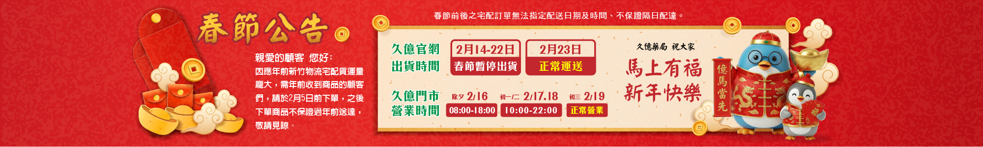 網路下單+實體店守護,久億雙重守護您的健康
